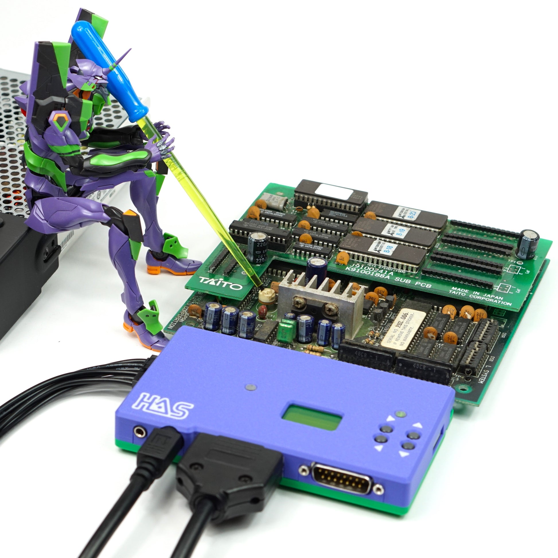 The HAS, PCB game, cables, and other accessories visible in the photo present a setup example and are not included and shown for illustrative purposes only.